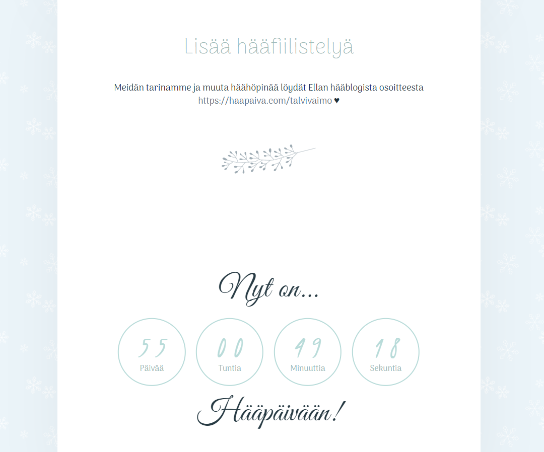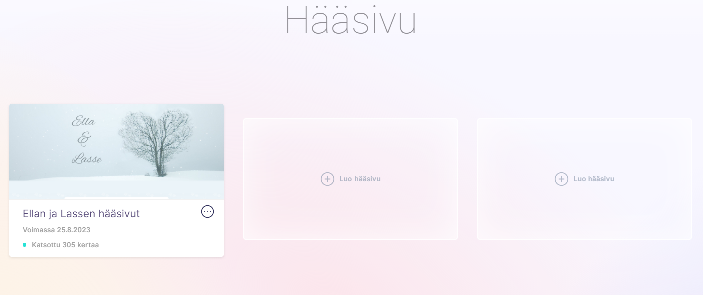 Olin hyvin tyytyväinen sovellukseen ja sen tarjoamiin palveluihin. Etenkin hääsivut ovat jo tähän mennessä saaneet paljon kiitosta vierailta, mikä on tietysti mahtavaa kuulla! En ole itse ollut monissa häissä koko elämäni aikana, joten minulla ei ollut mitään käsitystä, kuinka yleisiä tällaiset hääsivut ovat. Veikkaan kuitenkin, että niiden käyttö tulee yleistymään tulevina vuosina!