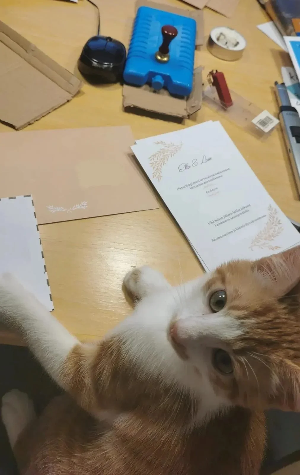 Näiden lisäksi olemme hankkineet lisää hääkoristeita hääkirpputorilta, muun muassa upean hääkaaren, joka toimittaa häissämme kuvausseinän virkaa. Ai niin, ja sitten meille muutti (söpöysvaroitus!) pieni karvainen hääassistentti, joka taannoin teki kanssani hääkutsuja. Reiskaksikin häntä kutsutaan, ja hän on tuonut paljon iloa tähän pimeään ja kalseaan syksyyn.